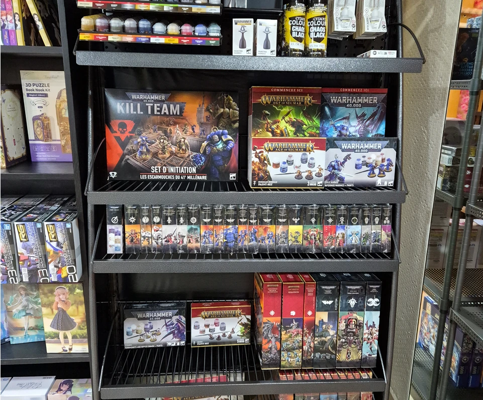 Forgez votre armée, menez la guerre. Plongez dans les ténèbres du 41ème millénaire avec Warhammer 40,000 ou dominez les Royaumes Mortels de Age of Sigmar. Que vous soyez stratège en quête de batailles épiques ou passionné de modélisme, notre sélection de figurines, codex et peintures répond à toutes vos ambitions. Du premier coup de pinceau à la victoire finale sur le plateau : relevez le défi du hobby ultime !